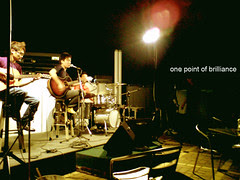 over the weekend, one point brilliance played an acoustic set as you can see above. i liken the music to good'ol rock and roll with a tasteful american indie twist. the lyrics are honest and hopeful, they spin a yarn and the music brings it altogether as a coherent entity that bellies their namesake.. where for the moment you are listening to them, they let you forget about your surroundings and draw you into their brilliance.